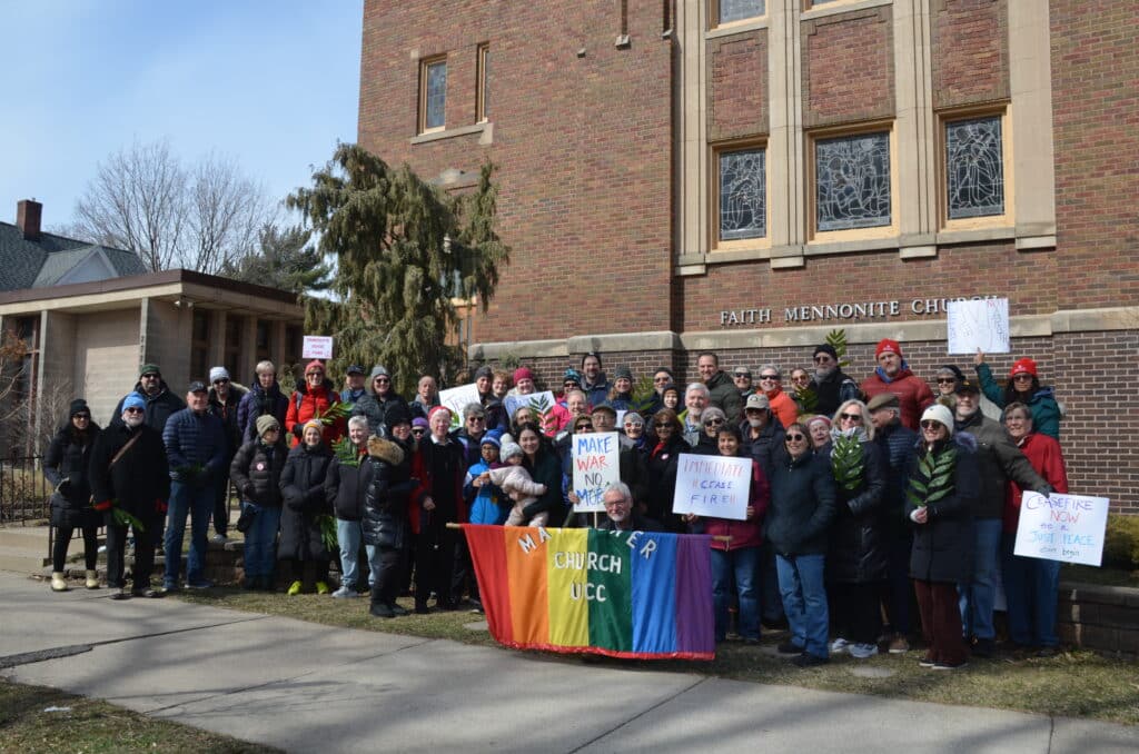 Several UCC churches around Minnesota’s Twin Cities joined a locally organized Gaza Ceasefire Pilgrimage on the Saturday before Palm Sunday, walking for sections or all of the 22-mile journey along the Mississippi River. The pilgrimage intended to approximate the distance from Gaza City to Rafah that roughly a million Gazans have faced in efforts to flee violence and ground invasions from the Israeli military.