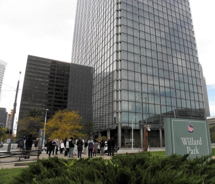 Those messages were visible from the start of the event in Cleveland’s Willard Park, across from the federal building. Demonstrators held handwritten signs saying things like: