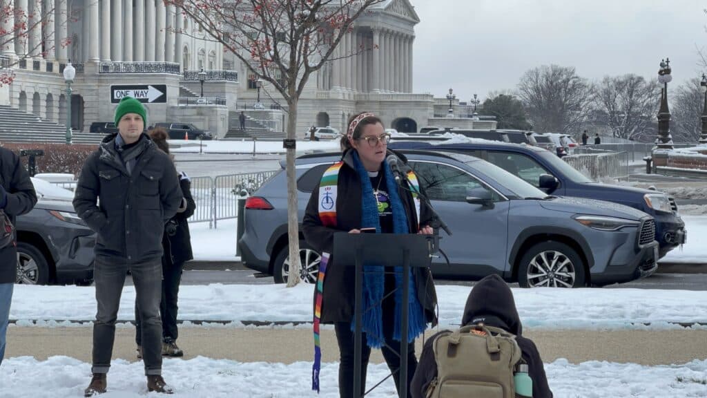 “Jesus said, ‘Just as you have done to the least of these, you have done to me,’” said Emily Parker, a member of Cleveland Park UCC in D.C. “With U.S. weapons and other support, the Israeli government has been enacting a horrific and genocidal campaign against Palestinians in Gaza that includes indiscriminate bombing, forced starvation and dehydration, destroying medical and other civilian infrastructure, and creating conditions that lead to disease.
