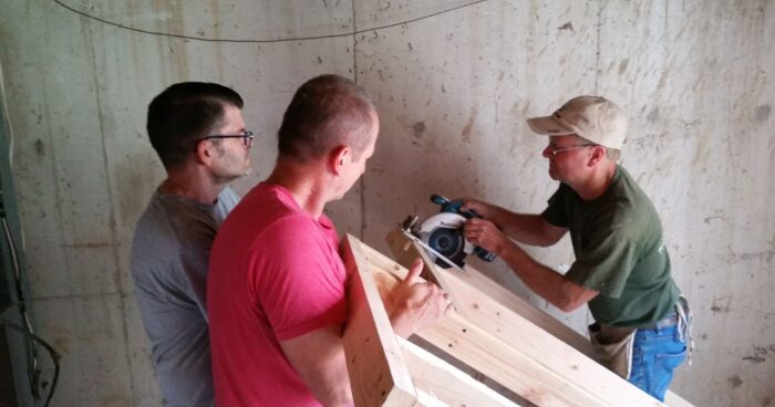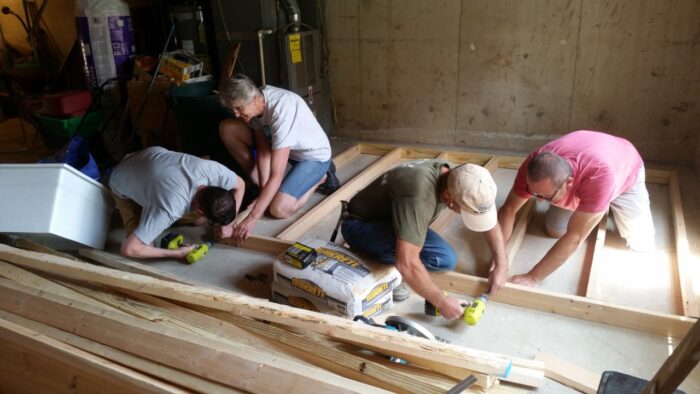 The Lutheran team worked on finishing framing in the basement, insulating the outside walls and ceiling, and hanging drywall on the ceiling.