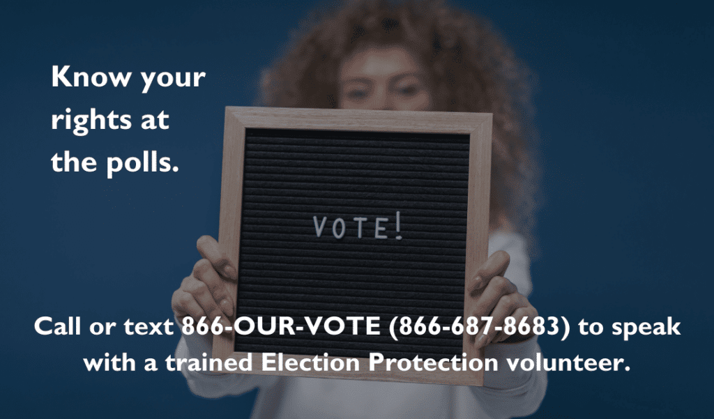 Ways to protect the right to vote are detailed at this page of the UCC Our Faith Our Vote project. The page tells where to call or text to report intimidation or irregularities at the polls. It also offers ways people can volunteer to protect the right to vote — on Election Day, and year-round.