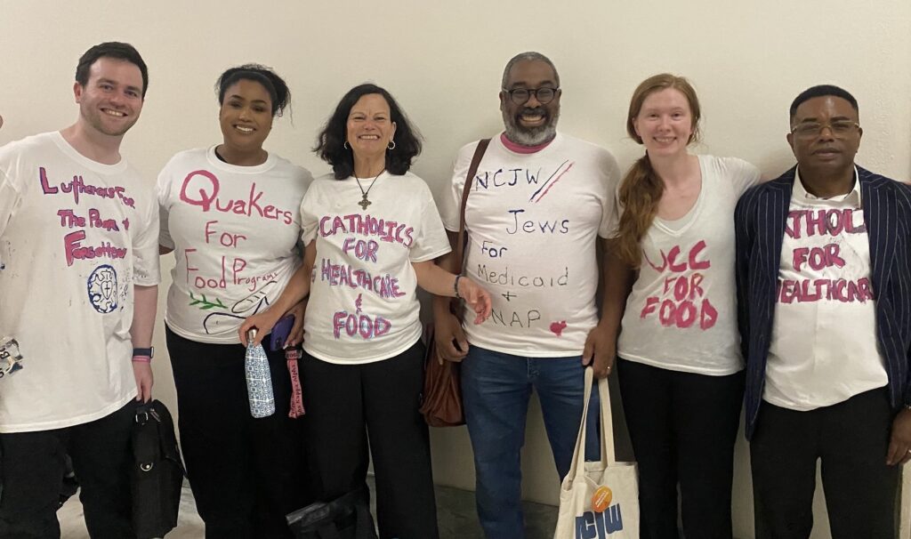 We also showed up with our interfaith partners. This spring, our office organized with our interfaith partnership to pray and hold vigil in the halls of Congress as committees considered the cuts to Medicaid and SNAP. Wearing homemade t-shirts emblazoned with “UCC for Healthcare” and “Catholics for Medicaid,” our presence was a reminder that people of faith are watching and that God calls us to protect the vulnerable.