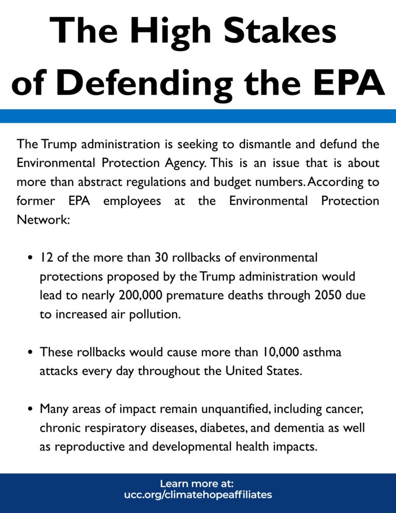 Knowing that a top priority of the Trump administration had been to defund and dismantle the EPA, as the new Climate Hope Affiliates network began to launch in 2025, protecting the EPA became an early focus.
