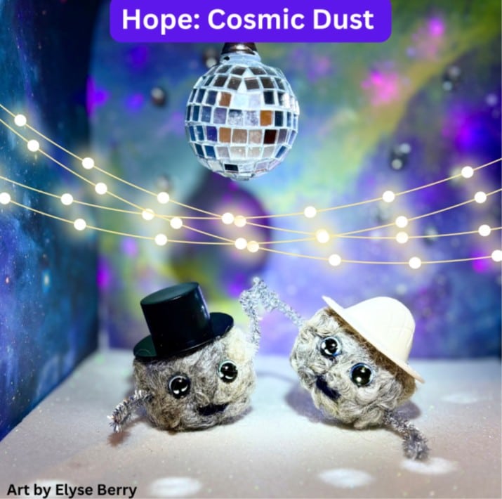 Berry’s playful and delightful artwork accompanies each children’s moment, which delve into celestial topics like cosmic dust, stellar nurseries, and dark constellations.