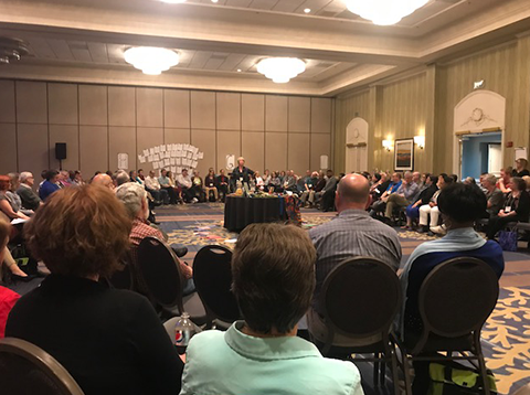 “Rooted in scripture, we engaged in conversations on the health of our systems including four tracks related to search and call, ministry in local churches, ministries beyond the local church, and the ministry of Committees on Ministry,” said the Rev. Holly MillerShank, team leader of the UCC’s Ministerial Excellence, Support and Authorization ministry, which hosted AM21. “We celebrated together the completion of the 2018 Manual on Ministry and reminded ourselves that the new MoM is not a replacement for ministry itself — which is derived from the sharing of the Good News of Jesus Christ — but provide[s] us common language and values to support the extravagant welcome so essential to the polity of the United Church of Christ.”
