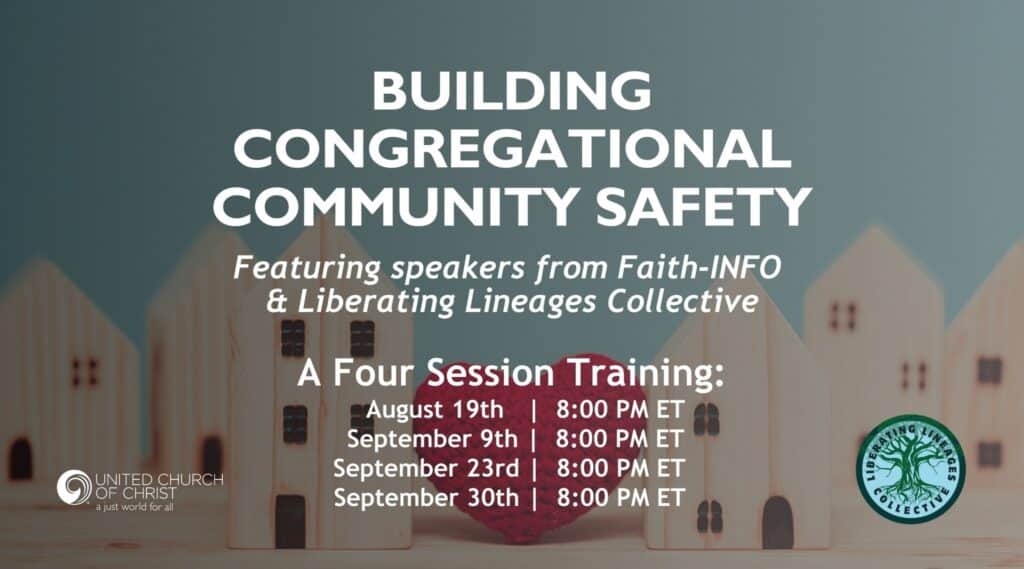 These questions and more will be explored in an upcoming four-part webinar series called Building Congregational Community Safety. This series launches on Aug. 19, and will continue Sept. 9, 23, and 30 at 8 p.m. Eastern time.