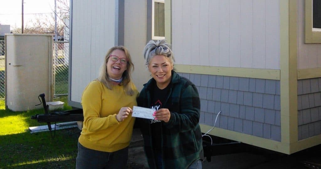 When First Congregational started collecting money last year to sponsor a tiny home for a family of three in nearby Berry Creek, the Conference Disaster Relief team contributed $2,500 to get the drive started. Gifts from FCC church members and other interested supporters raised enough to get an initial donation to Nolan-Cain to start construction. On March 23, First Congregational met its $7,000 goal.