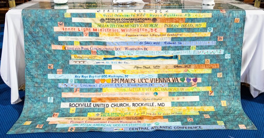 Today, the spirit of the event lives on as a very special quilt made for the occasion with the names of participating churches that will get passed from congregation to congregation.