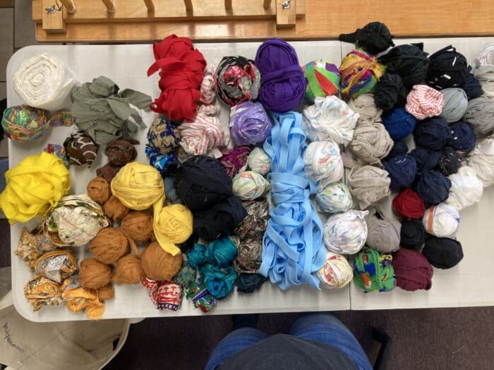 Another member, when first hearing about the project, imagined that if he brought in one of his son’s t-shirts to be woven together with the other fabrics, “I’d look up and see it and go, ‘Whoa, that’s my heart on the wall.’” Anderson described this as a fitting description for the project.