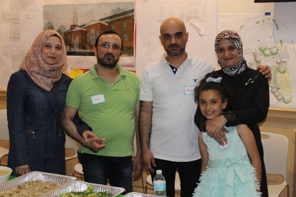 On Sunday night, April 30, Westmoreland Congregational, in Bethesda, hosted a refugee support dinner at the church and invited their neighbors and friends. The joint effort of the UCC congregation with Quaker Friends and a Presbyterian congregation will assist three Syrian families in the D.C. area. Three cooks/aspiring caterers prepared the meal for about four dozen paying guests, which the churches used as a get-to-know-you gathering and fundraiser.