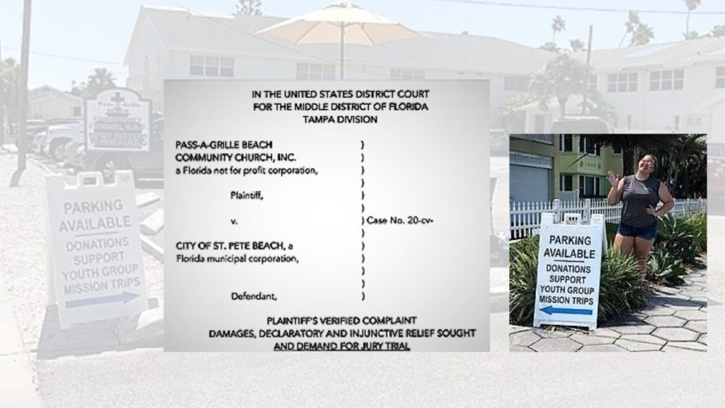 The city objected to Pass-A-Grille’s practice of allowing users of a popular nearby beach to park cars on its lot. Parking is free, but the church accepts donations to support mission trips that are part of its youth program. The church’s young people are often there to greet the public, describe their mission work, and, if requested, even pray with the guests.
