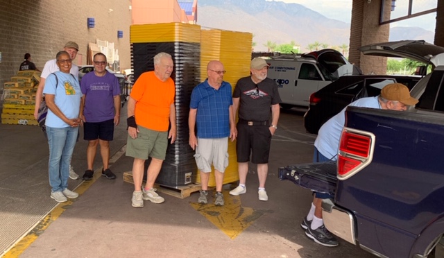 This week a caravan of church members delivered over $3,000 of urgently needed items to Our Lady of Soledad which now continues to receive more than 100 migrant asylum seekers daily. We are encouraged and inspired by the outpouring of support from our members and now the larger community. Laundry detergent, toilet paper, toothbrushes and individual sized toiletries, coolers, three pallets of storage containers and children ‘s coloring books – all supplies that are being delivered this week to the Bloom office.