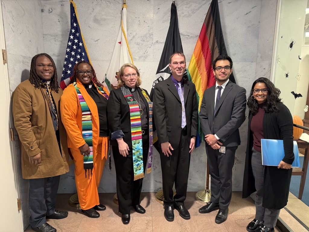 From L to R: Reverends Darrell Goodwin, Davena Creer-Jones, Rachael Pryor, Phil Hodson, and members of Rep. Adam Schiff’s staff outside his office.
