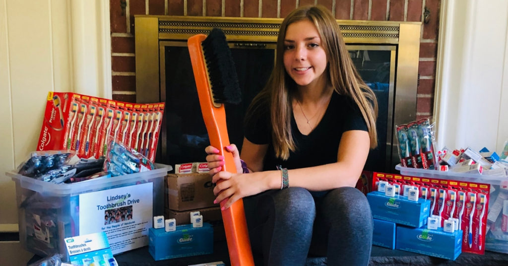 “When I asked my pastor, [the Rev. Alison Buttrick Patton], if she would support my drive, she was very excited to help!” Lindsey said, noting that the pastor gave her a collection of toothbrushes for her drive. “I really appreciate all of the support that my church gives me in my service work, including my toothbrush drive and the mission trips that we go on.”