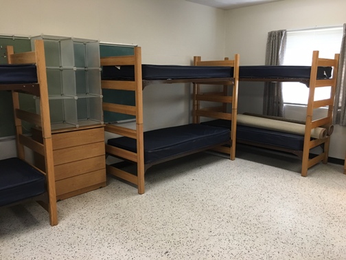 Pictured: UCC volunteers with client Marlene (center); dormitory accommodations for volunteers.