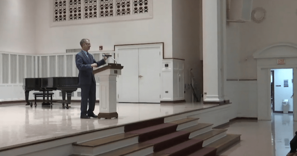 United Church of Christ General Minister and President the Rev. John Dorhauer spoke April 11 at Elmhurst University in Illinois on the need for people of faith to confront Christian nationalism. In his talk, “Christian Nationalism: A Threat to Both Democracy and Christianity,” Dorhauer addressed how this far-right religious movement has grown to the point that some national politicians espouse its oppressive ideology.
