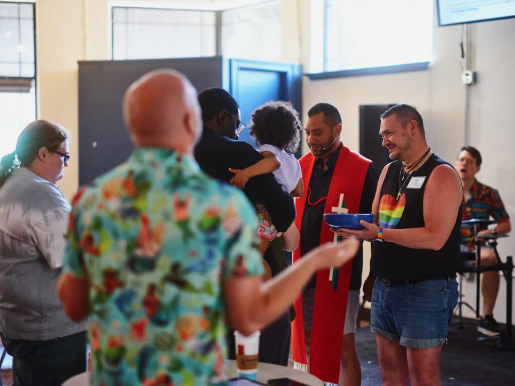 Tavárez currently serves as the pastor of En Vivo Church, and he recalls a time years ago when the church suddenly lost most of its members following division within its previous denomination. At the time, Tavárez would regularly consider closing the church, but each time a new queer person showed up for church, he felt called to continue building the space “to welcome anyone and everyone.” It has since grown significantly, joined the UCC, and made community central to how the church worships, with the congregation meeting around tables and including time for discussion in church services.