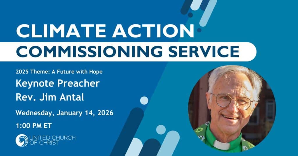 As we enter a year of critical importance in the struggle for climate justice, the UCC is holding a Climate Action Commissioning Service. Gather with us as we faithfully prepare ourselves to take action in the coming year. The theme for this service and for the 2026 Climate Hope Art Contest is “a future with hope” (Jeremiah 29:11). Our preacher will be the Rev. Jim Antal, author of “Climate Church, Climate World” and Special Advisor on Climate Justice to the UCC General Minister and President. Even if you cannot make the live event, still register, and we will send you a recording.