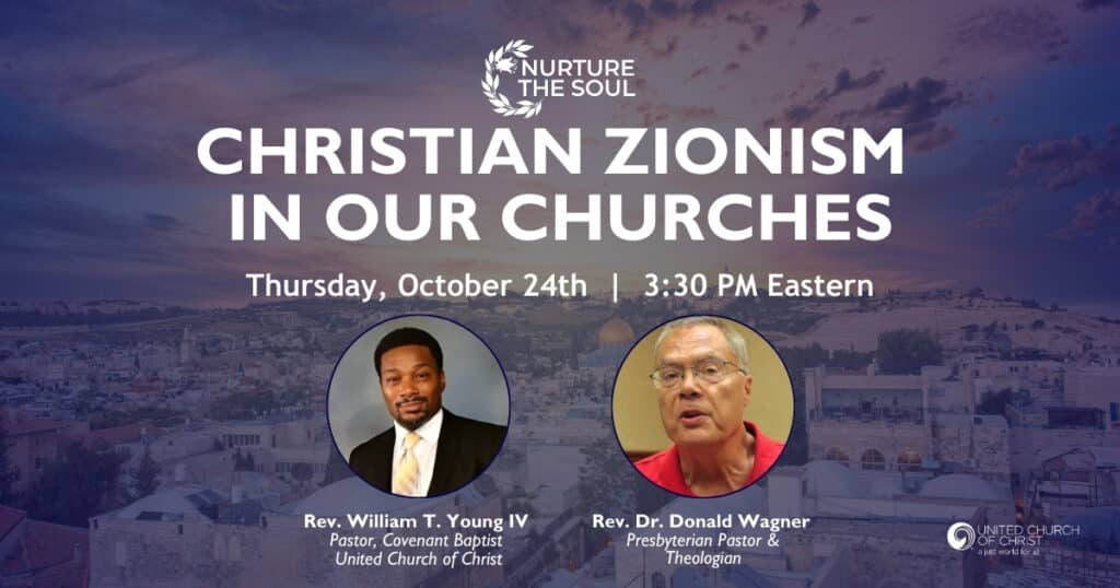 Rev. Dr. Donald Wagner, retired Presbyterian pastor and theologian, and Rev. William T. Young IV, pastor of Covenant Baptist United Church of Christ, will share with us how they unpack and challenge Christian Zionism in their contexts.