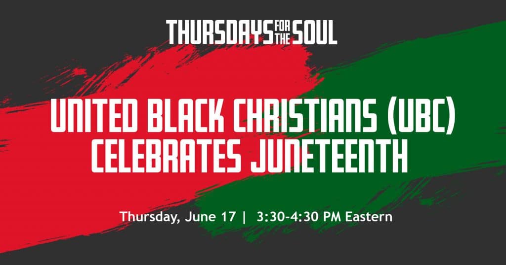 On Thursday, June 17th at 3:30 pm EST, come and celebrate with UCC’s United Black Christians (UBC) celebrate the historic significance of Juneteenth to our UCC congregations, especially our African Descendent churches