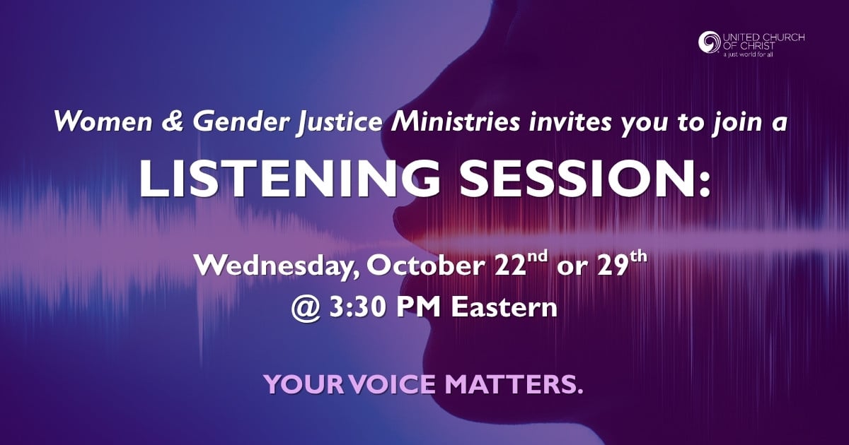 As the United Church of Christ continues to live into its call to justice, your voice matters. Join one of two listening sessions to share your experiences, hopes, and needs around women and gender justice within the life of the…