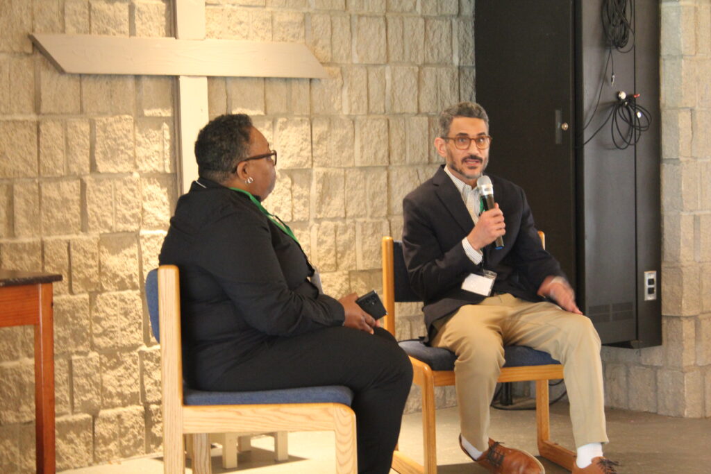 The Rev. Lesley Jones, pastor of Truth and Covenant UCC in Cincinnati, led a conversation with Soliman following his talk.