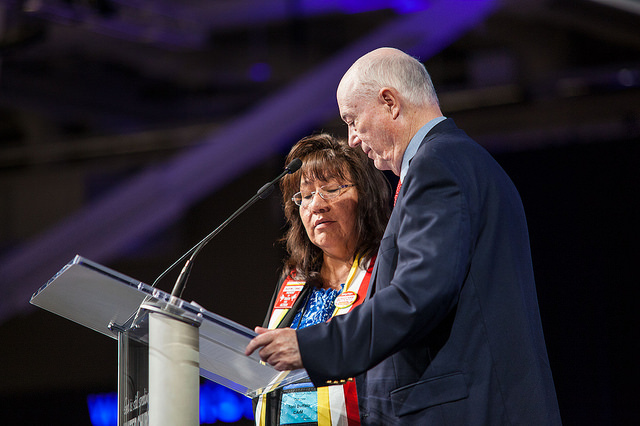 In a moment to highlight faithfulness, trust and an emerging partnership, General Synod 2015 paused from deliberating business to celebrate the land transfer of more than 20 parcels of tribal land from the South Dakota Conference of the United Church of Christ to the Dakota Association.