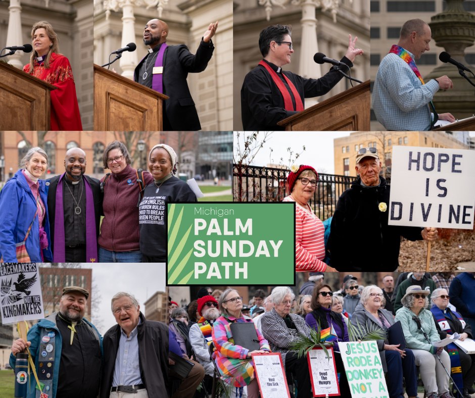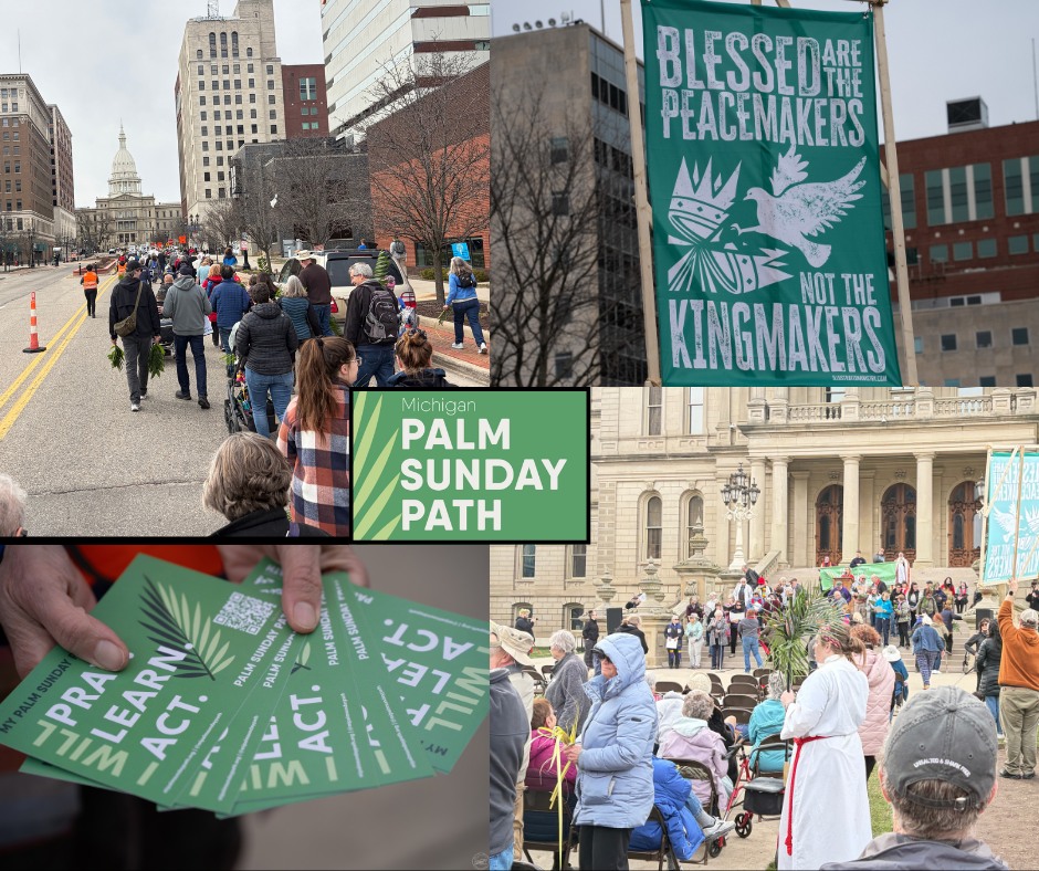 In Michigan and elsewhere, folks carried palms in the streets with calls to ‘feed the hungry, heal the sick, welcome the stranger’