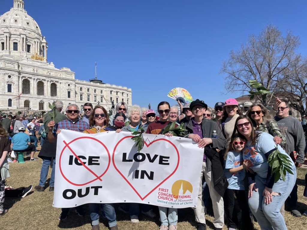 Palm Sunday Paths took place around the country, including Minnesota, where First Congregational Church of Minnesota UCC gathered carrying palms and messages of love.