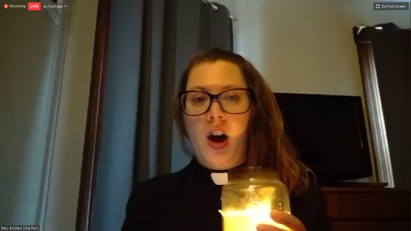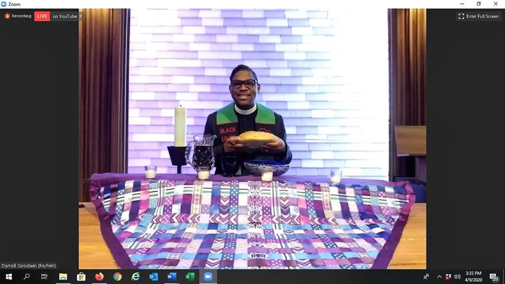 in her introduction, one way for isolated people to gather nonetheless. “We are a denomination that believes that God is still speaking, even at times beyond our capacity to understand,” she said. “I implore you to have Communion in ways that are intentional, connective and even digital. The divine is bigger than our rituals, bigger than the rules we set for ourselves, and even bigger than our capacity to hold faith. And in times when we need to be connected more than ever, and when the only way to do so and to have Communion is digitally, then so be it.”