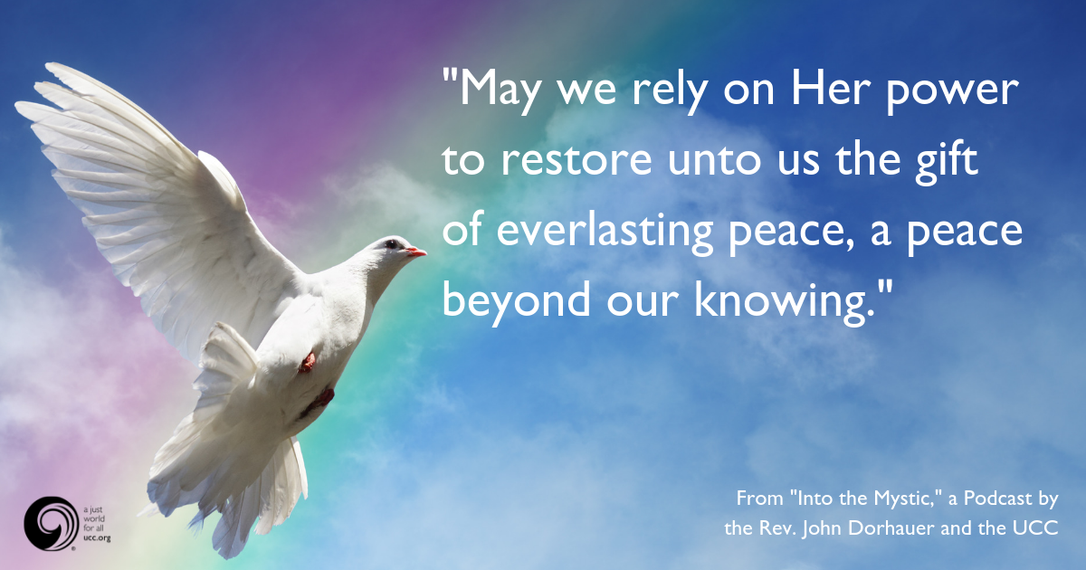 And finally, for peace in prayer and worship where the sacred arrives to heal, to hear, to inspire, and to speak. May we enter those sacred spaces believing that the Creator’s brooding presence can both soothe the savage breast and bind up the brokenhearted. May we rely on Her power to restore unto us the gift of everlasting peace, a peace beyond our knowing.