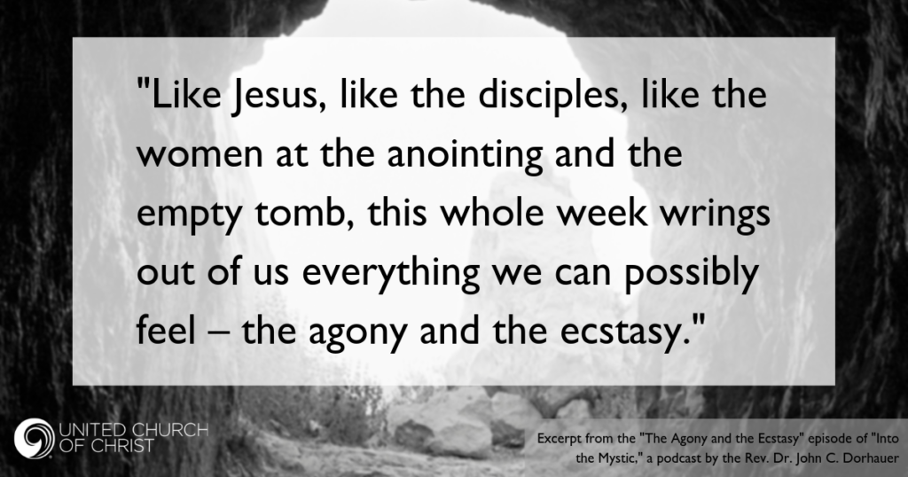 Like Jesus, like the disciples, like the women at the anointing and the empty tomb this whole week wrings out of us everything we can possibly feel – the agony and the ecstasy.