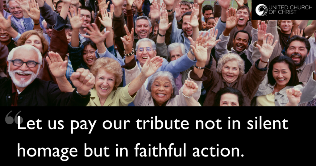 Let us pay not silent homage but homage of faithful action to the Rev. Dr. Martin Luther King, Jr. and all others who shed their blood for justice and freedom.