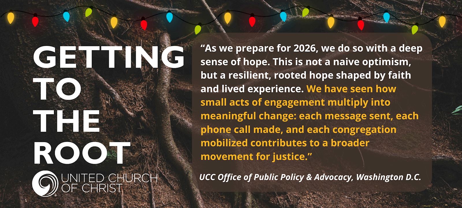 Each month, UCC experts unpack a complex justice issue through our Getting to the Root series. This month, the UCC Office of Public Policy & Advocacy team reflects on this past year to consider what we accomplished, what we learned, and what we continue to hope for as we move forward. You can read the full reflection here.