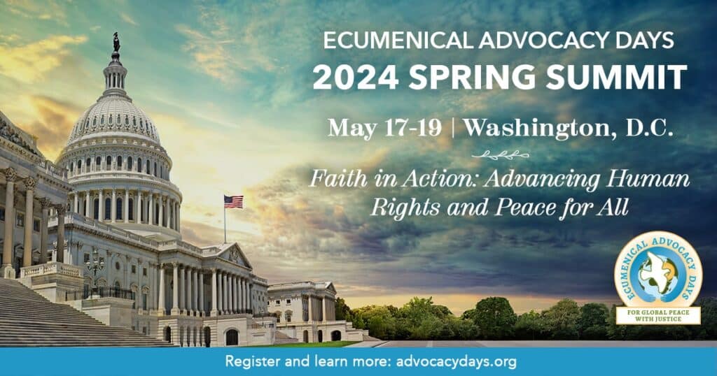 In person Ecumenical Advocacy Days has returned! This May, EAD will host a “summit” May 17-19 in Washington, D.C. The guiding theme is: “Faith in Action: Advancing Human Rights and Peace for All.” The EAD 2024 Spring Summit will include advocacy training for new and growing participant categories (seminary students, young adults) and will offer a chance for those who work with domestic and international priorities to connect and share. Ultimately, we want the universal voice of God, one of compassion, justice, and peace, to be lifted during these challenging times. Register now!