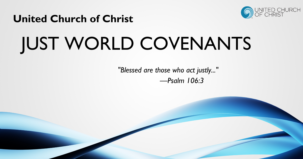 UCC Just World Covenants are adopted by local congregations and the diverse settings of the church to strengthen their commitment to building a just world for all through their ministry, mission, and witness. The UCC’s tradition of covenant includes a time of prayer, discernment and education that leads to a commitment to live out the Gospel in new ways. The UCC’s covenant programs are a unique opportunity to grow in spirit and vitality for the transformation of the world. Our covenant programs are: