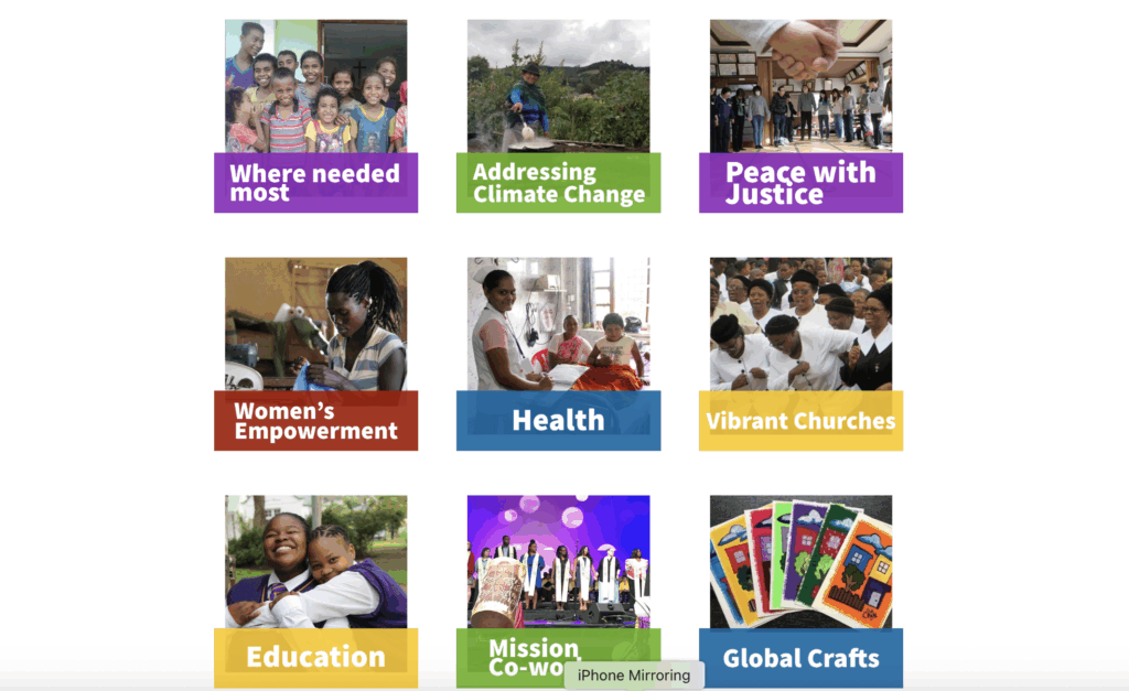 In addition to perusing giving opportunities, inspirational stories accompany each category, illustrating how gifts do make a difference in individual lives and entire communities. Stories such as those from Daniel Manariyo of the International Mutual Aid Committee who helps migrant women arriving in Morocco find a place of sanctuary.