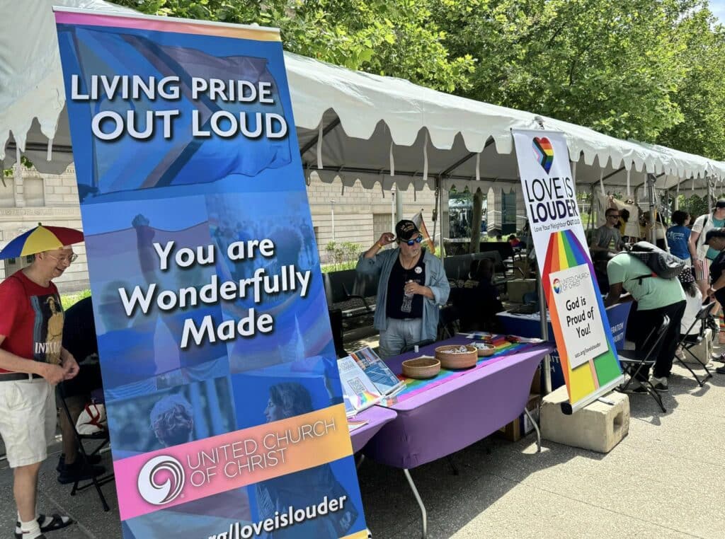 The UCC had a booth on Mall C, where Pride swag and UCC branded merchandise flew out of volunteers’ hands. Ward loved being a part of it all. “At our booth space we had people wanting to find a local church, sharing their gratitude for our large presence, or sharing how the message we were bringing was healing for them.”