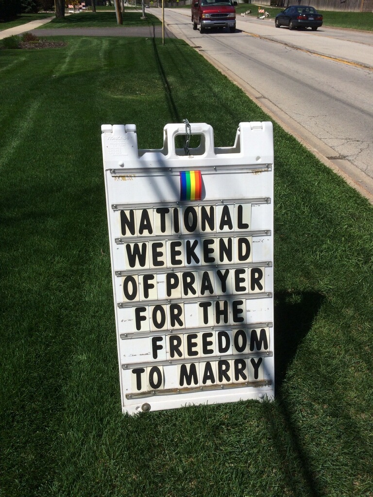 • Congregational UCC in Arlington Heights, Ill., will have a “Moment for Justice” during Sunday services where several of the church’s married LGBT members will speak on the importance of marriage equality.