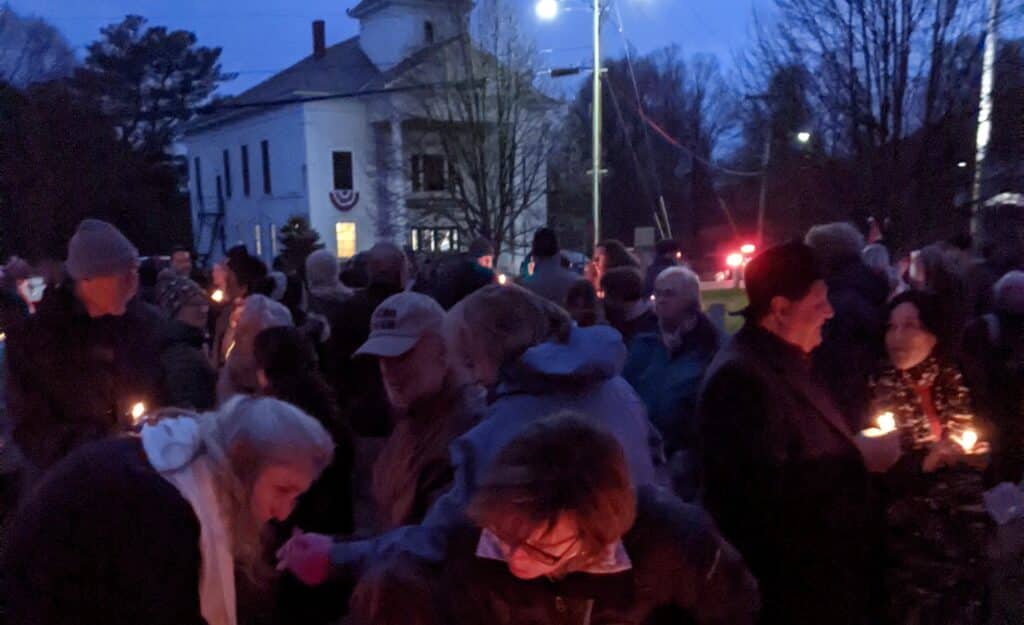 The church sits in the center of the small town near the local school and town hall, where many pass. Conversations with community members who joined the cleanup efforts led to the idea of holding a vigil on the church steps. Parents made a particular request — that it be held early enough to bring their kids.