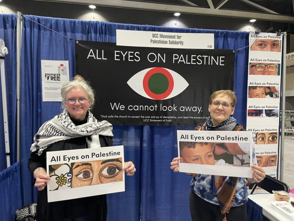 “We hope our motto for Synod, ‘All Eyes on Palestine,’ can connect people with the notion that right now a genocide is being livestreamed before our eyes,” Noonan said. “We want to remind ourselves that we can’t look away, but also that our partners are watching us. It goes both ways – they are literally praying for the UCC to take bold action in support of them. Words from us matter, our actions matter, small congregations witnessing and standing for this really gives hope to our partners in Palestine.”