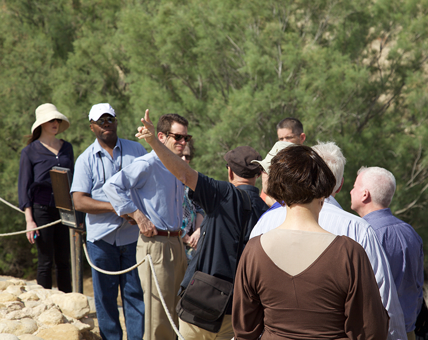The Rev. Rolf Pearson, who pastors the Evangelical Lutheran Church at the site, read Psalm 23 to the delegation before they embarked on a 5-minute walk along a winding path, ducking their heads below low-hanging branches before the path finally opened up to the baptismal pool. Those waters,where it is believed Christ was baptized by John the Baptist, are no longer connected to the Jordan River because the drop in the water level has cut it off.