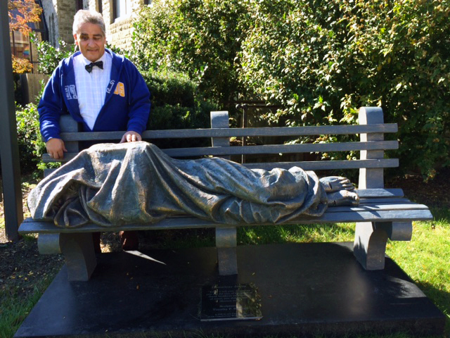 The sculpture also drives home the point that “no one — no one — wants to be poor or homeless,” Nicolino added. “There are a multitude of needs in our world and, at times, we may become hopeless. The reality is that God is very present in our community and world, and we need to just look around and be open to seeing and hearing God in what we would consider the most unlikely of persons and places.”