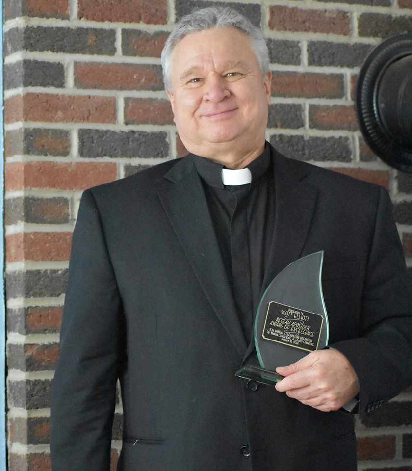 Elliott accepted a spirit of vision award during the community’s Martin Luther King breakfast on Monday, hosted by Mount Vernon Nazarene University (MVNU), and delivered the keynote remarks at the event celebrating Dr. King, involving MVNU, Kenyon College and the local community.