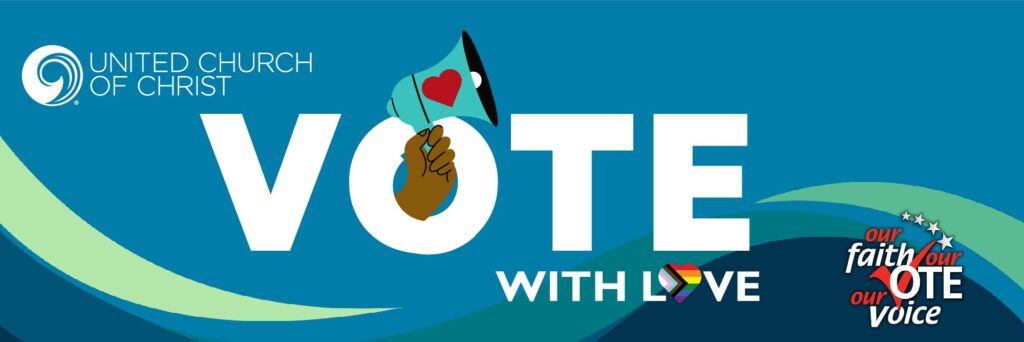Encourage others to #VoteWithLove by spreading the message through flyers, yard signs, and banners. Check out these free downloadable graphics to share within your congregation and community: