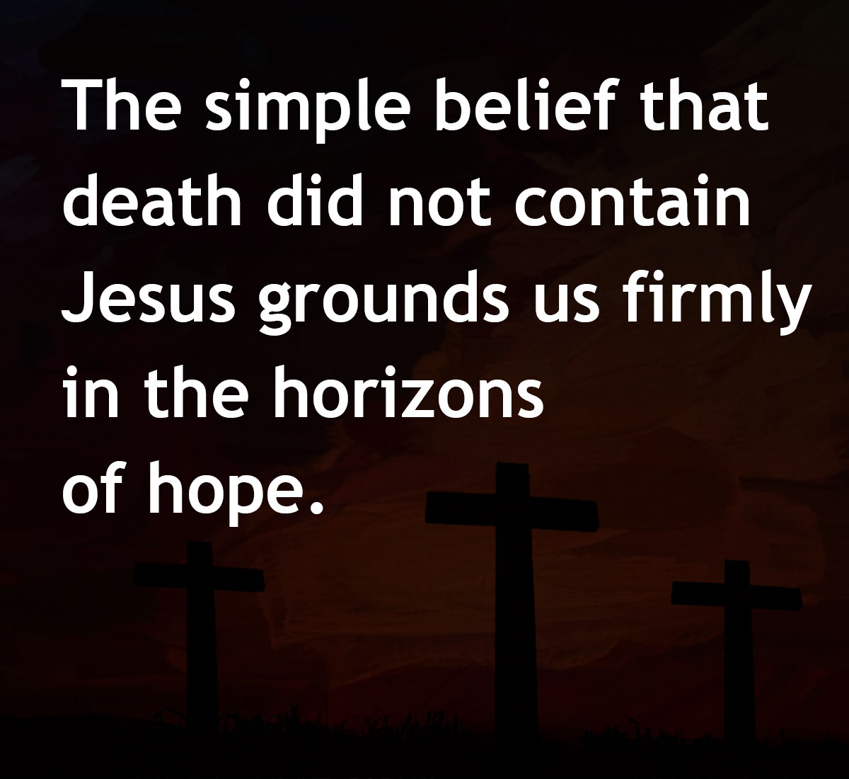 There is one thing, though, they cannot do: destroy our hope. The simple belief that death did not contain Jesus grounds us firmly in the horizons of hope. It is perhaps the singular vocational responsibility of the Church, the Living Body of Christ: to procure hope in the face of life’s most disruptive and destructive forces.