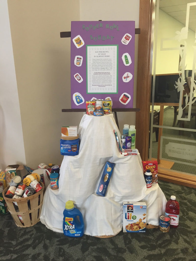 Pleasantville UCC has participated in the Souper Bowl of Caring since 2011, collecting nearly $1,500 and 2,000 pounds of food for the cause in that time. The church gives all of its donations to the New Britain Food Larder, a local food pantry with which it has a connection throughout the year. The church promotes the initiative in different ways, such as a skit performed before worship service by members of the youth group, in the weeks leading up to Super Bowl Sunday.
