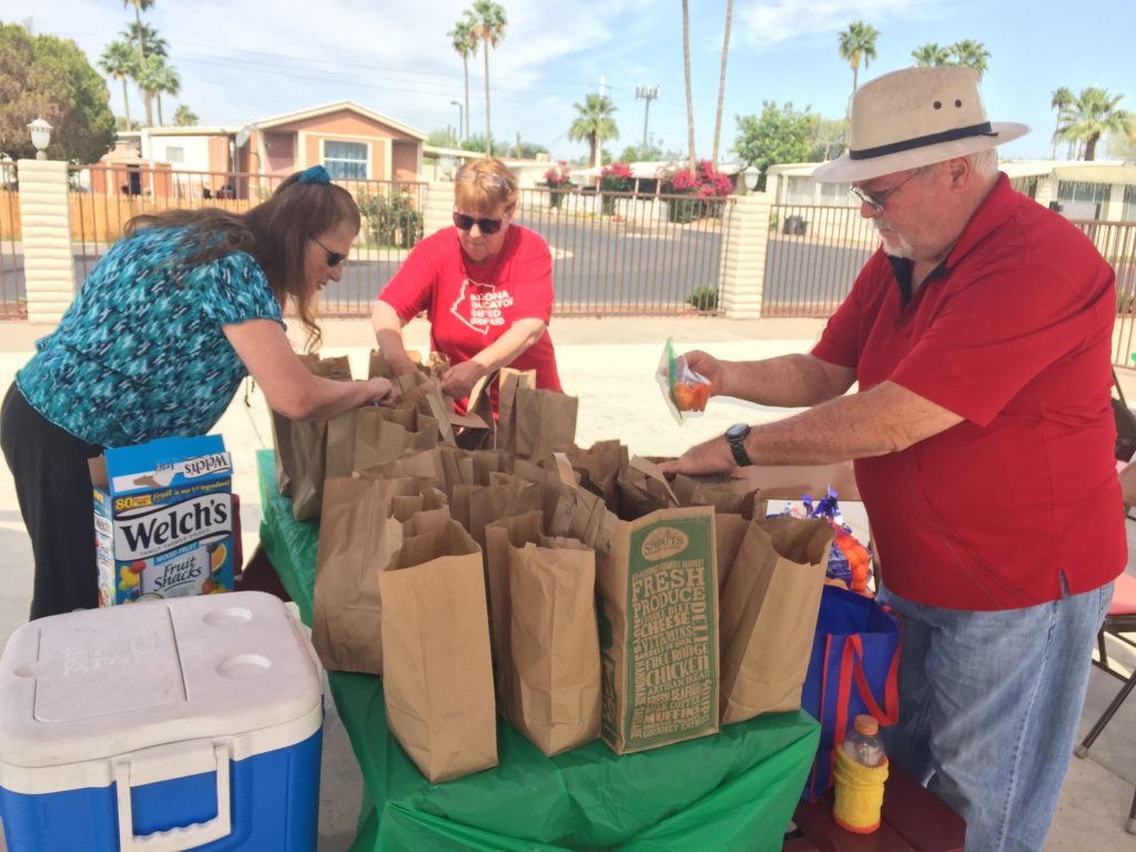 In Sahuarita, the local food bank at The Good Shepherd UCC prepared to assist families with food over the next few days. Penny Pestle, chair of the food bank, said the organization has been working with the schools to determine how to help. The Sahuarita Food Bank delivered backpacks with staples like tuna on Wednesday afternoon to schools in the area in need of the most assistance, and provided more than 400 sack lunches with sandwiches, fruit and other items. Church volunteers are stepping up to add additional assistance to food distribution through Saturday. Teachers and neighbors have dropped off food and financial support, and church members have been baking cookies to drop off at demonstration sites.