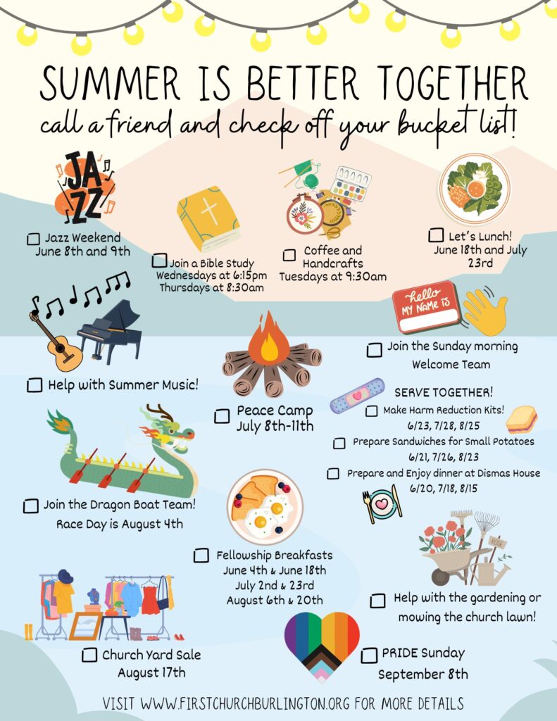 “The magic of summer is something that First Church leans into,” said Bilton. “But with a diverse community with a variety of interests, abilities and ages, reflecting that in our church programming can seem a little disparate.”