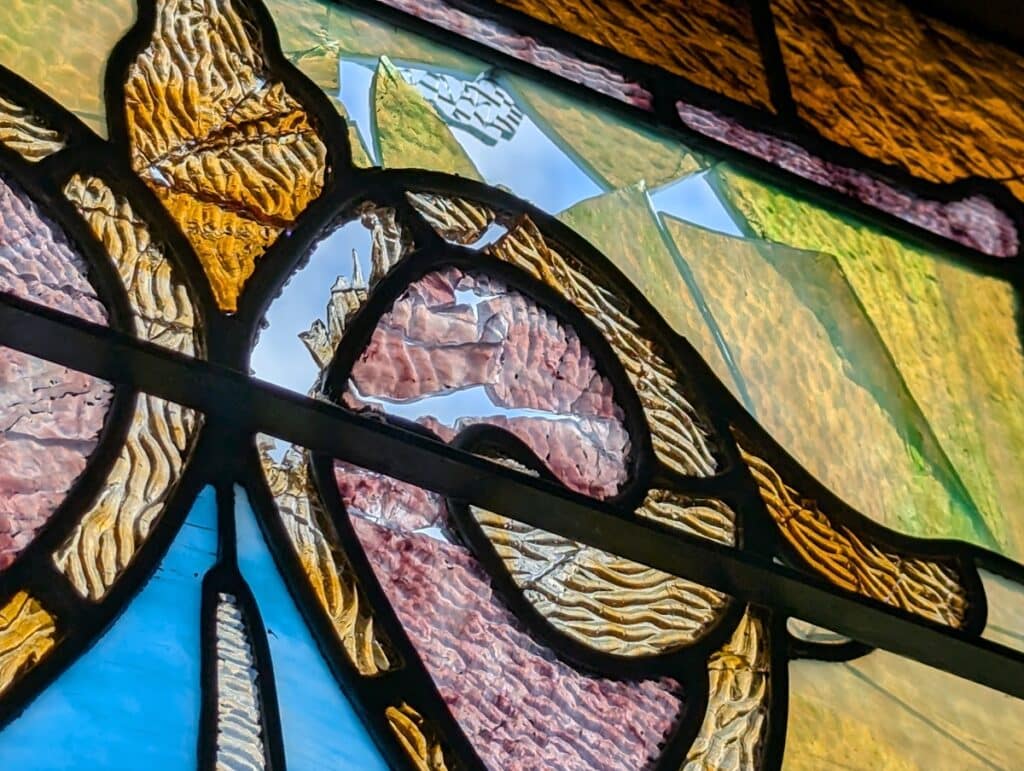 Like many United Church of Christ churches, Beavercreek UCC in Clackamas County, Oregon includes everyone, and the sign in front of their building proclaims “LGBTQ+ welcome,” and it often has banners flying stating their Open & Affirming stance. The Rev. Coqui Conkey, who has been serving as the “supply” or interim pastor there since this past March, believes they were targeted because of this when three historic stained glass windows were broken by vandals on a Friday night in June, which is celebrated as Pride Month.